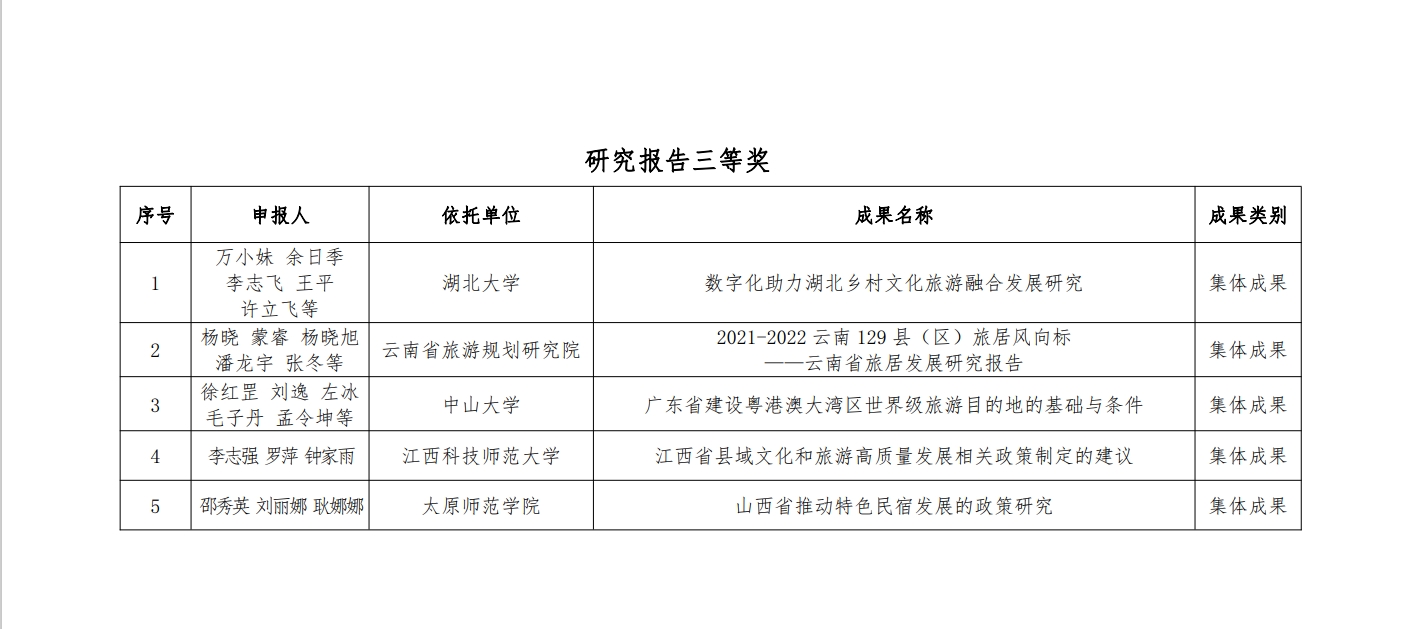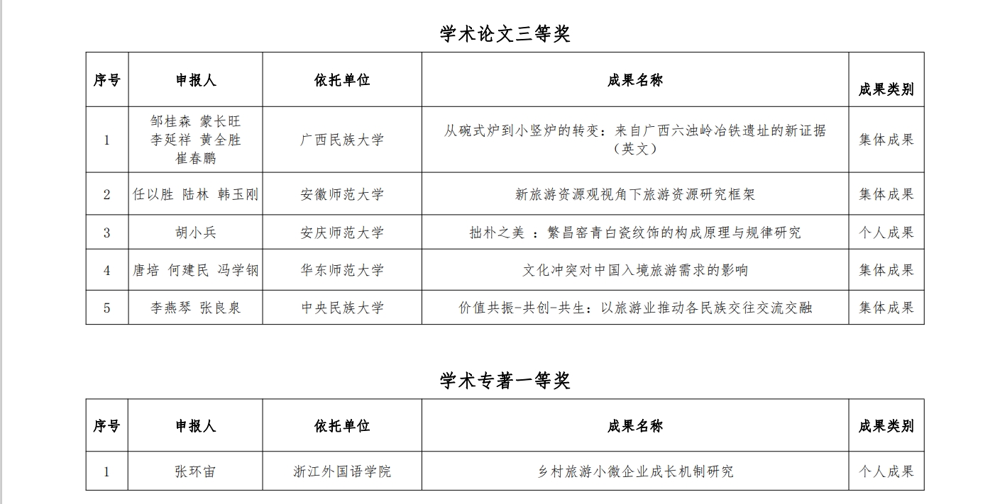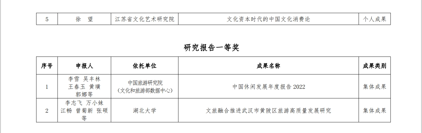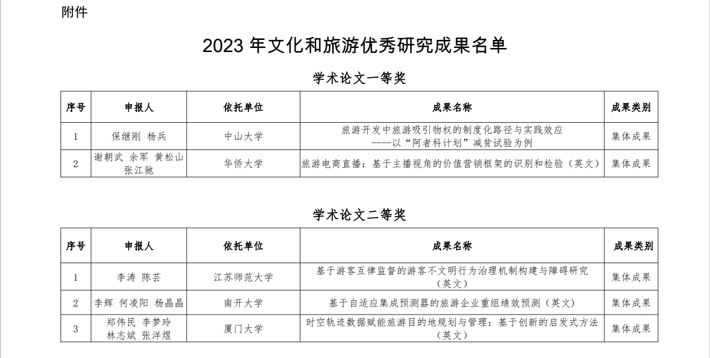 经报文化和旅游部,2023年度共30项成果被遴选为文化和旅游优秀研究成果。其中,学术论文10项,专著10项,研究报告10项。