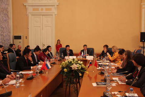 11月23日上午,中俄文化旅游论坛圆桌会议在俄罗斯圣彼得堡塔夫利达宫举行。国家旅游局副局长杜江出席并致辞。他表示,中俄互办旅游年活动使得两国间的旅游交流达到了前所未有的水平。希望两国在旅游投资等领域,拓宽联系,共同发展。根据国家旅游局安排,我院院长戴斌与俄罗斯联邦旅游署副署长阿蒙茨共同主持圆桌会议。