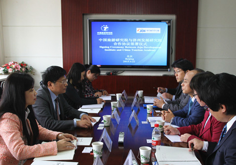 2015年4月23日,中国旅游研究院与济州发展研究院在我院1016会议室签署战略合作协议。中国旅游研究院院长戴斌、济州发展研究院院长姜起春出席签字仪式并代表双方在协议书上签字。