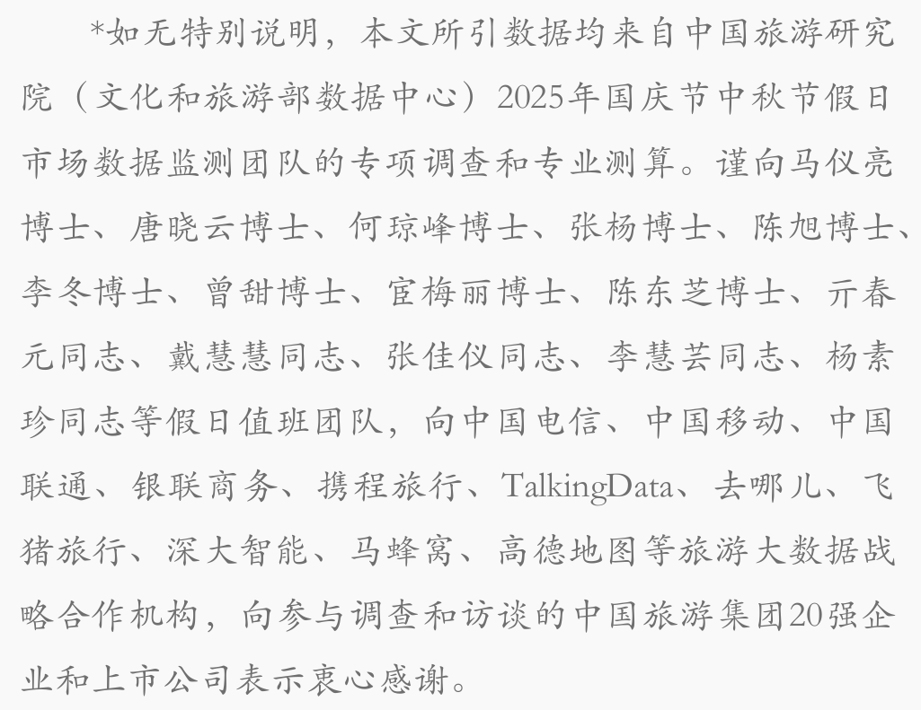 旅游者有进入、体验和分享的权利,旅游人和当地居民有可持续发展和高质量就业的权利。这个假期,旅行社、在线旅行商和导游,旅游景区和度假区、酒店民宿等旅游住宿机构,以及租车、餐饮、零售、演艺、娱乐等业态实现了较为满意的财务数据。中旅旅行“双节同庆 假日狂欢”、广之旅“南国之南 天天天蓝”、春秋国旅“青春在路上 精致小团游”、众信旅游“穿越港珠澳大桥”、上航旅游面向入境市场的“中国大周游”等主题线路在假日期间收获了市场,也赢得了口碑。10月5日,南京市星级饭店及部分品牌酒店平均入住率达到85.8%,全市等级民宿的平均入住率也达到82%。沈阳市重点星级酒店和民宿入住率普遍维持在80%以上。锦江、首旅、开元、华住、东呈、华天、黄河宿集、西双版纳宿集等酒店与民宿品牌运营商,也接受了假日市场的检验。假日期间,导游和一线员工一直都是行程中和景区内美丽风景。南昌滕王阁景区日均接待游客2万人,导游队伍人均每日步行超2万步,重复讲解7、8次,赢得了游客的交口称赞。恩施清江索道的游客在临行前由衷感叹:清江星火的队徽,就是最可靠的“通行证”!