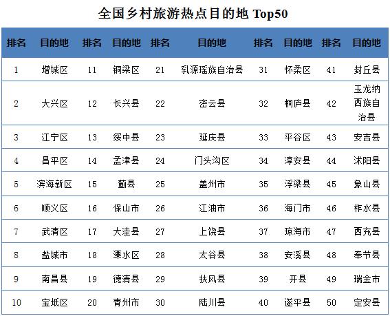 三、乡村游热点目的地备受青睐