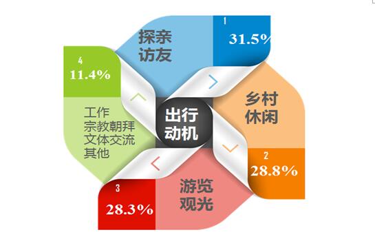 八、出行动机中休闲和探亲访友近九成