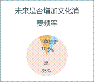消费意愿持续激发,市场主体积极乐观。文化创意、创新产品的不断涌现充分迎合了市场上的多元化需求,广大人民群众的消费意愿不断被激发。专项调研显示,85%的受访者表示未来会增加文化消费的频率,93%的受访者未来会增加文化消费支出。文化消费市场需求旺盛,文化消费供给侧也对市场前景整体持乐观态度。面向企业的专项调研显示,54%的文化和旅游相关企业对文化消费市场前景非常看好,37%的企业表示比较看好。未来3-5年,35%的文化和旅游相关企业未来会大力投入,50%的企业表示会增加投入。