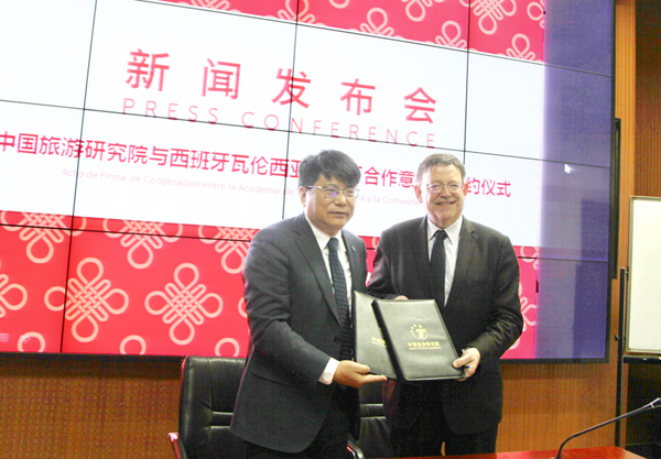 会谈期间,戴斌院长和西莫·普奇先生分别代表中国旅游研究院和西班牙瓦伦西亚自治区旅游局签署了合作意向书。根据意向书,双方将建立友好合作关系,共同提升中国与西班牙瓦伦西亚自治区两地的旅游交流,促进旅游市场的繁荣和发展。