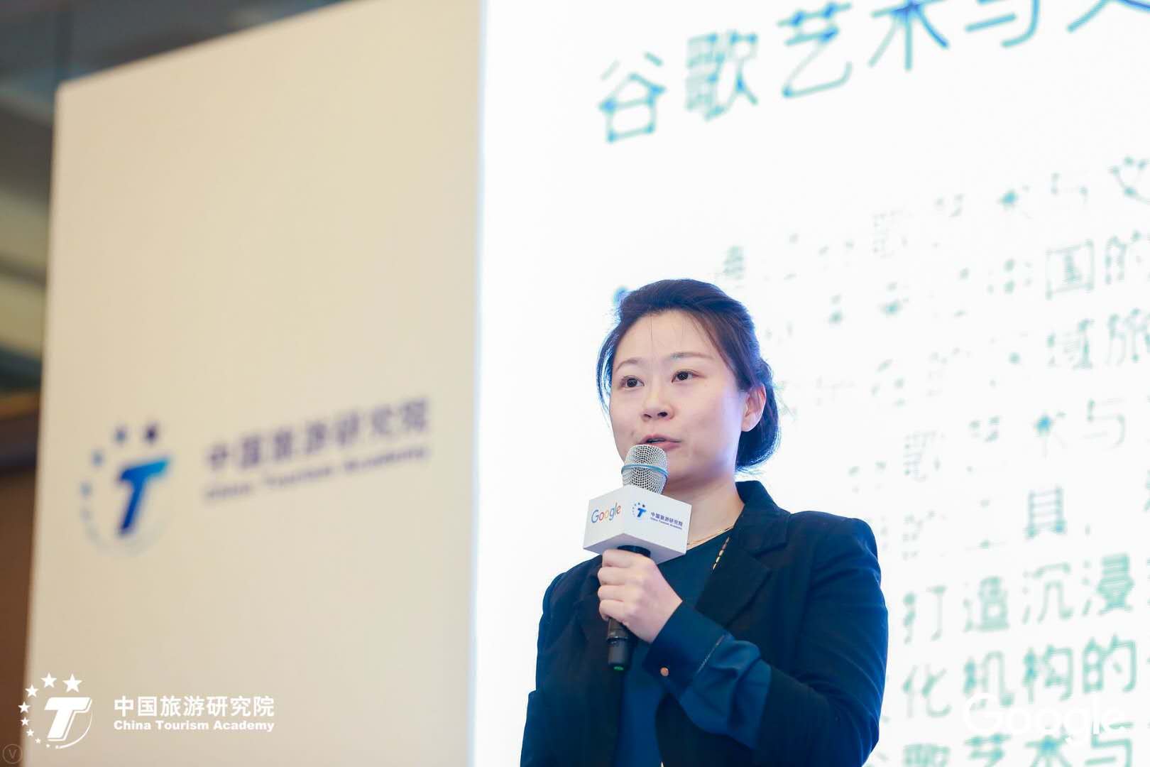 谷歌商务拓展合作总监吴丹做了题为“科技与文旅融合——谷歌艺术与文化项目” 的专题讲座与研讨。她介绍,Google Arts & Culture (谷歌艺术与文化项目)的宗旨在于推进艺术机构的数字化进程,通过技术把优秀的艺术作品推广到全世界,利用数字技术来保存全球的文化内容,让世界各地的人民都可以通过网络来欣赏人类文化和艺术。