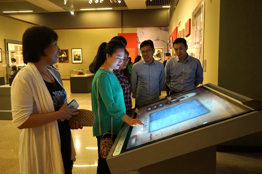 在展厅里,大家认真观看展览中陈设书稿、珍贵照片等,追随着马克思一生的光辉足迹。有的同志用手机记录着珍贵的展品,有的同志现场体验了3D展示、朗读亭、全景照片等互动式展览方式。