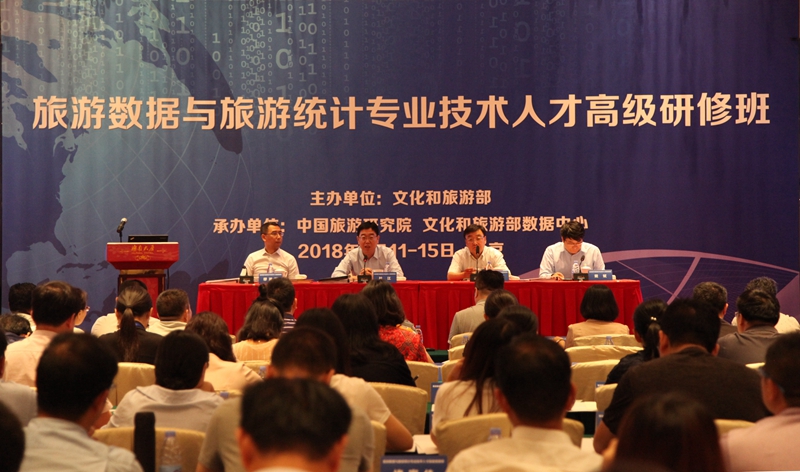 2018年6月11日上午,由文化和旅游部主办,中国旅游研究院、文化和旅游部数据中心承办的2018年旅游数据与旅游统计专业技术人才高级研修班在北京湖南大厦顺利开班。文化和旅游部党组成员杜江出席开班仪式并讲话,要求学员认真学习、积极研讨,不断提升旅游统计的严肃性和合规性,坚决杜绝旅游统计造假等违法违规行为。政策法规司班子成员满宏卫、中国旅游研究院戴斌院长出席了开班仪式。开班仪式由人事司班子成员缪沐阳主持。