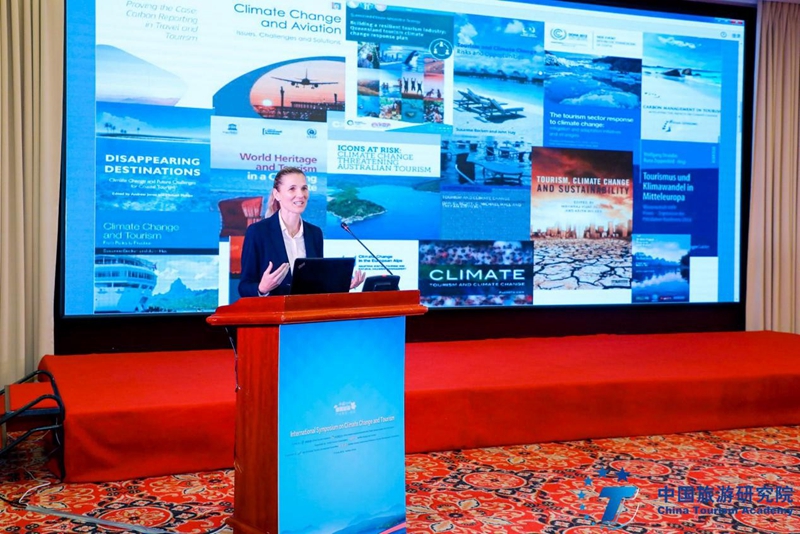 国家气侯中心变化首席正研徐影女士介绍了中国气候变化领域研究最新进展与趋势,提出旅游业应增强主动应对气侯变化的综合能力,建立健全应对气侯变化的保障机制。