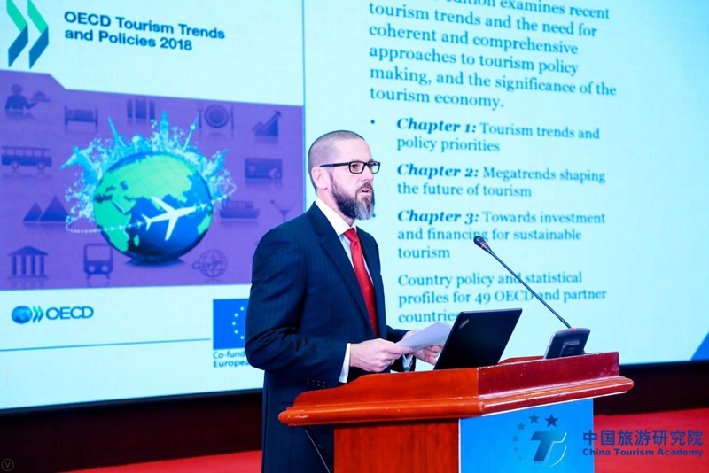 经济合作与发展组织(OECD)Peter Haxton博士介绍了2018年OECD旅游业发展趋势报告和旅游业在可持续发展方面的政策建议。