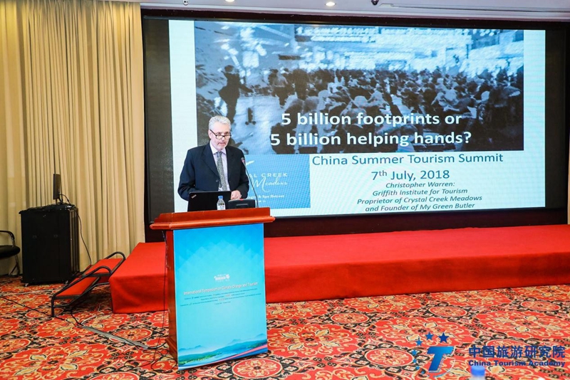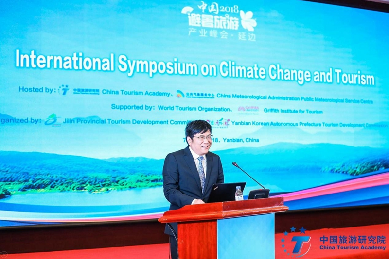 2018年7月7日下午至7月8日上午,由中国旅游研究院、中国气象局公共气象服务中心联合主办,世界旅游组织、澳大利亚格里菲斯大学支持,吉林省旅游发展委员会和延边州人民政府承办的全球气候变化与旅游国际论坛在吉林省延边朝鲜族自治州成功召开。中国旅游研究院院长戴斌,中国气象局公共气象服务中心主任孙健,中国科学院院士秦大河、中国工程院院士丁一汇,世界旅游组织可持续发展部副主任Sofia GUTIERREZ女士,格里菲斯大学旅游学院院长Susanne Becken教授,联邦人文学院院士Colin Macerras教授,SunX计划创始人Geoffrey Lipman 教授,滑铁卢大学气候与社会研究主席Daniel Scott教授,联合国环境署消费和生产股干事Helena女士,经济合作与发展组织(OECD)Peter Haxton博士及来自法国、加拿大、巴西、泰国、澳大利亚、新加坡等国家和地区以及中国在内的国内地方政府、国内知名高校、旅游与气象行业100余名专家学者、企业代表出席了会议。