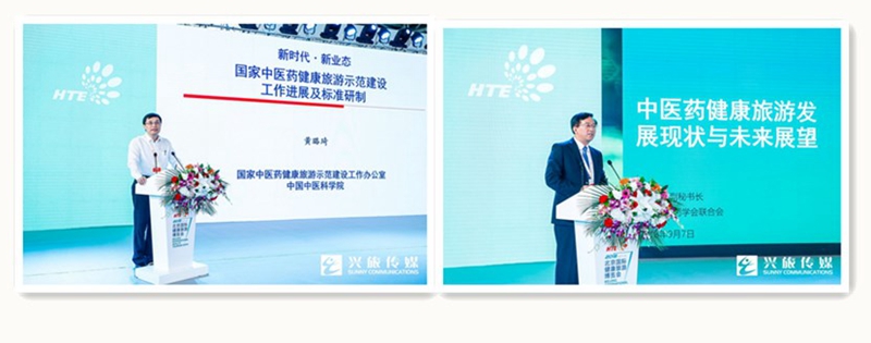 在主旨演讲环节,黄璐琦院士以“科技研发助力中医药与旅游融合发展”、戴斌院长以“健康旅游:时尚、科技与产业化”、朱海东副司长以推进‘放管服’,提升健康旅游产业化水平”、世界中医药学会联合会副秘书长陈立新以“中医药健康旅游发展现状与未来展望”为题分别做了主旨演。