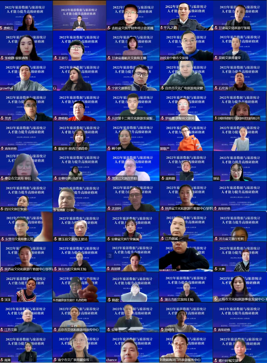 11月28日至12月2日,经人力资源和社会保障部、文化和旅游部批准,由文化和旅游部人事司主办,中国旅游研究院(文化和旅游部数据中心)承办的“2022年旅游数据与旅游统计人才能力提升高级研修班”在线顺利举办。