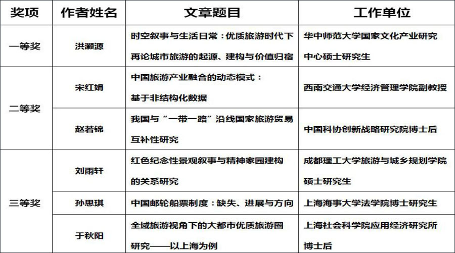 2018年中国旅游科学年会论文获奖名单