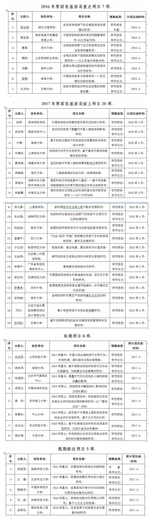 根据《原国家旅游局科研项目管理办法》规定,兹定于5月14日启动2016-2017年原国家旅游局科研项目、部分延期和限期修改项目的结项审查工作。为保证项目研究质量,本次结项审查由秘书处统一组织评审、验收。